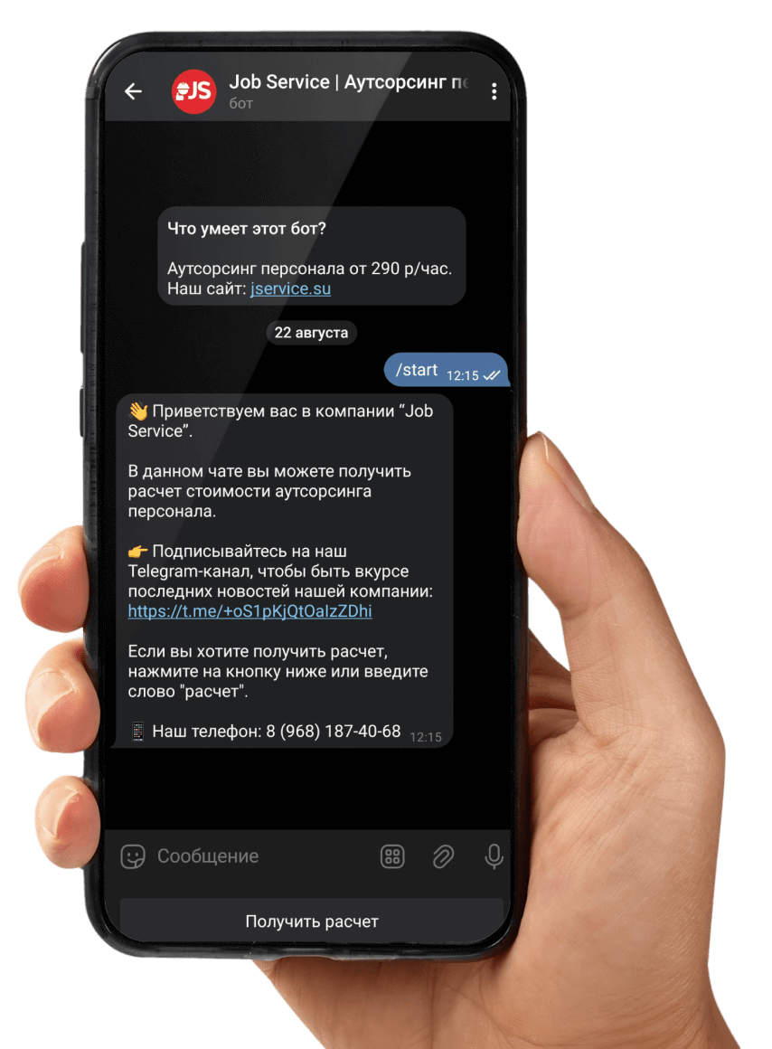 — Отправим расчет в течение 1 часа в ответ на ваш запрос прямо в Telegram